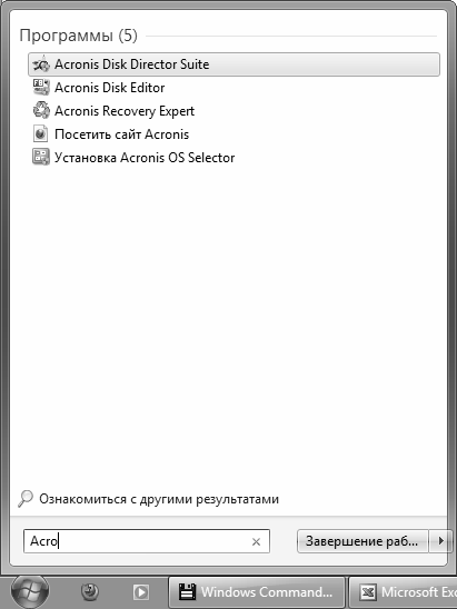 Поиск будет осуществляться по мере ввода данных. При этом в верхней части меню Пуск будет автоматически формироваться список объектов, удовлетворяющих условию поиска (рис. 2.10).