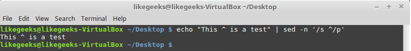 $ echo "This ^ is a test" | sed -n '/s ^/p'