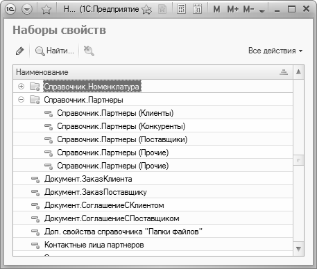Каждый объект программы имеет набор определенных свойств, параметров и реквизитов. Например, в справочнике физических лиц указывается ФИО лица, дата его рождения, пол, контактная информация и прочие сведения, в справочнике контактных лиц партнеров – название партнера, даты регистрации и прекращения связи, и т. д. Однако администратор программы для ряда объектов может самостоятельно дополнить набор свойств, предлагаемый по умолчанию (например, добавить дополнительные параметры в окно редактирования или предусмотреть возможность ввода дополнительных сведения по тому или иному объекту).