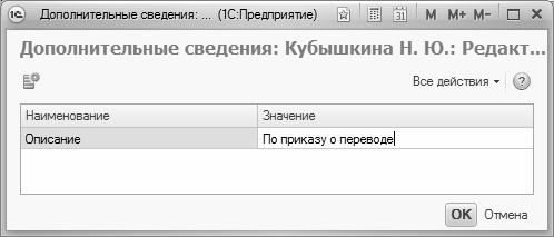 На рис. 4.25 показано созданное администратором дополнительное сведение Описание, для которого был установлен тип данных Строка.