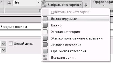 4. Нажав на кнопку «Выбрать категорию», выберите для жесткой встречи синюю категорию (жестко привязанные ко времени), для плавающей – зеленую (бюджетируемые).