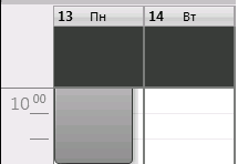 7. Чтобы изменить продолжительность встречи, берите ее мышкой за нижний или верхний край и, двигая край, удлиняйте или укорачивайте время встречи.