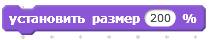 Блок «установить размер 200%» означает сделать спрайт в два раза больше.