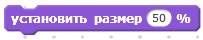 Блок «установить размер 50%» означает сделать спрайт в два раза меньше.