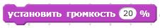 Блок «установить громкость 20%» означает установить громкость в пять раз тише нормальной.