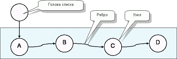 С внутренним представлением графа вы отчасти знакомы. Не удивляйтесь, ведь односвязный список – это тоже граф. Элементы списка – это узлы графа, а связи между элементами – это ребра. И хотя связь между узлами списка однонаправленная, такие графы тоже имеют право на жизнь. Разве нет дорог с односторонним движением?