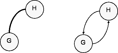 Здесь показаны лишь ребра, идущие от узла «H», но подобные списки содержатся и в других узлах. Например, в списке связей узла «G» есть ссылка на узел «H», поскольку узлы взаимно связаны. Так парами указателей создаётся двусторонняя связь узлов G и H (рис. 136).