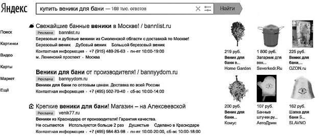 Система Яндекс Директ очень подвижна и все время претерпевает какие-то изменения и усовершенствования. На сегодняшний момент (февраль 2016) доступны три позиции над результатами поиска (блок называется «спецразмещение») и четыре результата под результатами поиска («гарантированные показы»). Также могут происходить показы справа от результатов поиска. Рекламные объявления Яндекс Директ видят люди, которые ищут товары и услуги через поиск на Яндексе. В Интернете вполне достаточно информации, чтоб найти ответы практически на все вопросы по данному поводу. Но чтоб было понятно, куда нужно двигаться, я расскажу про рекламу для своих веников.