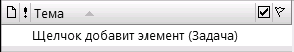 1. На панели задач, находящейся справа от календаря, поставьте курсор на строчку с серой надписью «Щелчок добавит элемент «Задача». Впишите в эту строчку название любой вашей задачи, например: «Шеф: подписать заявление на отпуск». (Для названий задач справедливы те же правила, что и для встреч: начинаем с ключевых слов в именительном падеже, отделенных двоеточием.)