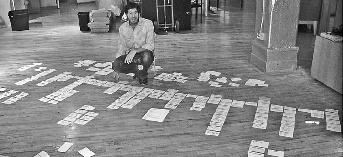 Мы начали раскладывать карточки на письменном столе, но очень скоро место на нем закончилось. Во время моего визита Гэри занимался переездом в другой офис и большая часть мебели уже находилась в лофте в Нью-Йорке. Так что мы недолго думая перенесли разросшуюся карту пользовательских историй прямо на пол.