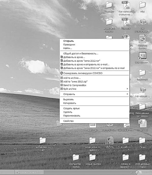 1. Щелкаем правой кнопкой мыши по пустому месту на поле компьютерного рабочего стола.