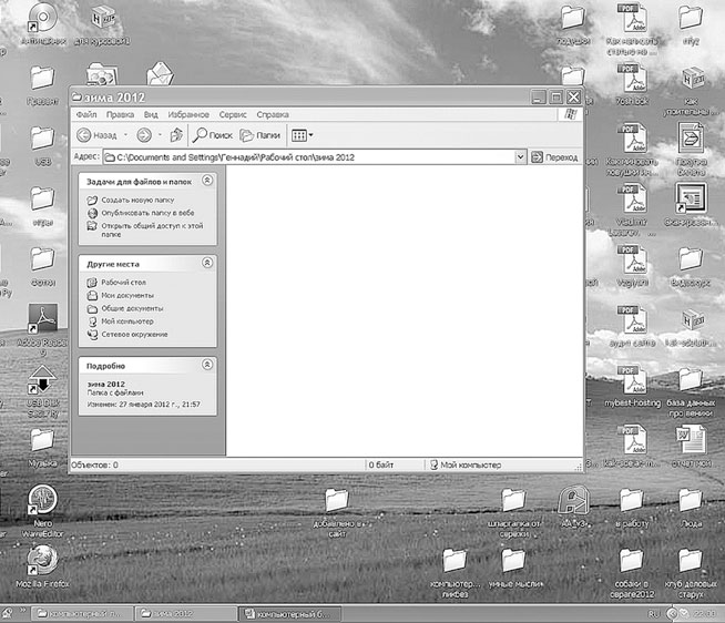 20. Название НОВАЯ ПАПКА сотрется. Считайте, что вы оторвали наклейку с реальной папки. (Можно это сделать гораздо проще. Со временем, когда вы немножко освоитесь, можно просто на выскочивший значок Новая папка щелкнуть клавишей Delete. Но сейчас есть смысл пока не торопиться.)