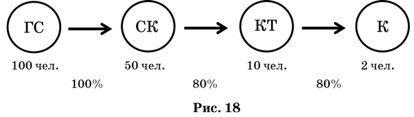 Таким образом, у вас выстроилась конкретная, правда, не очень радостная система конверсии: 50, 80, 80 (рис. 18).