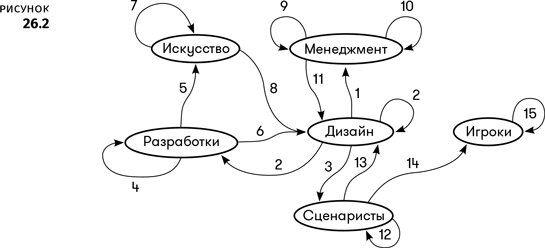 На схеме вверху можно увидеть некоторые способы сохранения и передачи информации внутри геймдизайн-команды. Каждую стрелку можно представить в виде одного или нескольких документов. Давайте подробнее рассмотрим каждую из групп и узнаем, какие документы им могут пригодиться.