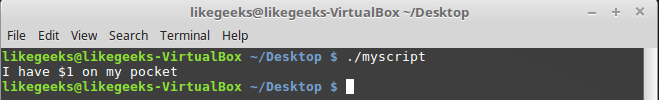 echo "I have $1 in my pocket"