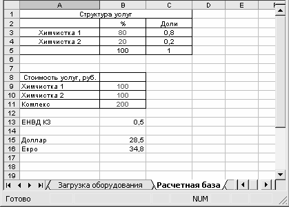 В рассматриваемом примере расчетной базой мы будем считать набор основных показателей (структура услуг, курсы валют, и др.), которые впоследствии будут использоваться в разных расчетах.