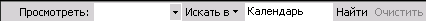 Для того чтобы найти в Календаре встречи по ключевому слову, в Outlook 2007 просто введите нужное слово в соответствующее поле и нажмите изображение лупы справа: