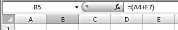 Строка формул состоит из двух основных частей: адресной строки, которая расположена слева, и строки ввода и отображения информации. На рис. 3.7 в адресной строке отображается значение В5, а в строке ввода и отображения информации – формула =(А4+Е7).