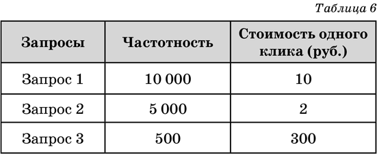После того, как вы подберете семантическое ядро, вам нужно будет оценить его эффективность. Сделать это можно с помощью достаточно простой таблицы 6.
