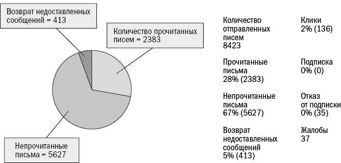 Рис. 5.5. Данные, предоставленные вашим источником по маркетинговой email-рассылке, могут подсказать, как увеличить количество прочитанных писем, переходов по ссылкам и другим микроконверсионным моментам. Ключевой момент — в анализе: какую роль эти микроконверсии играют в вашей общей воронке