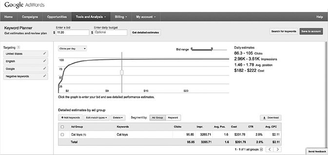 Предмет вопроса — оптимизация вашего трафика для конверсии. К примеру, Google AdWords может отслеживать микроконверсии, а это позволит понять, где они находятся и как работают. Существует прекрасный инструмент, которым может пользоваться каждый (даже не покупая никакой рекламной кампании), — это Google AdWords Keyword Planner (как показано на рис. 5.6, ранее этот инструмент назывался External Keyword Tool).