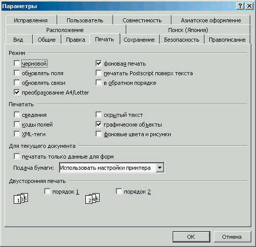 Настройки печати можно найти не только в диалоге «Печать», но и в основных параметрах конфигурации Microsoft Word