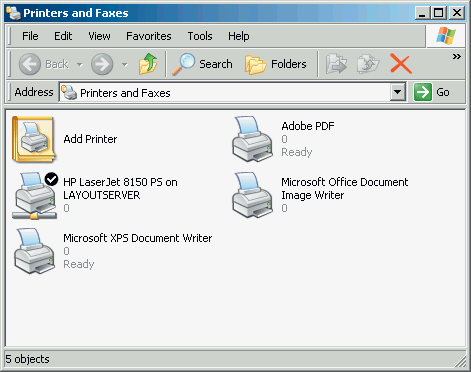 В некоторых программах установки принтера предполагается, что данное устройство будет использоваться по умолчанию, и без лишних вопросов задаются соответствующие параметры. В других программах пользователь может сделать это вручную из диалогового окна Printers and Faxes (Принтеры и факсы) или Printers (в зависимости от версии Windows), а затем щелкнуть правой клавишей мыши на имени принтера и выбрать пункт Set as Default Printer (Использовать по умолчанию). Поскольку стандартный подход здесь отсутствует, после установки принтера полезно перейти в диалоговое окно Windows и проверить настройки, чтобы не быть застигнутым врасплох случившимся (или не случившимся), после того как вслед за установкой принтера будет выдана первая команда печати.