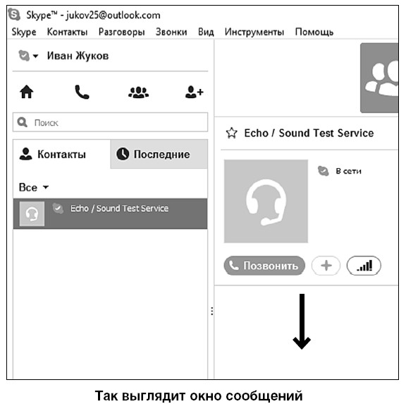 8. Чтобы понять, находится ли ваш собеседник в сети Интернет в данный момент, обратите внимание на центральную часть окна сообщений.