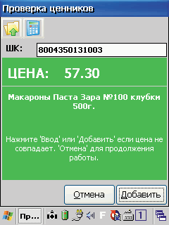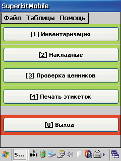 Загрузка справочников предполагает загрузку номенклатуры из файлов стандартного формата (Excel), которые заказчик получает заполненными от поставщиков. Соответственно мобильный АРМ приемки и инвентаризации был упрощен, исходя из описанных выше проблем персонала. Помимо этого – в связи с ограничениями, присущими недорогому терминалу сбора данных, – была удалена сложная логика программного обеспечения «СуперКит Мобайл» и оставлены лишь базовые функции загрузки/выгрузки номенклатуры для проведения приемки и инвентаризации товаров.