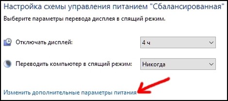затем выберите «Изменить дополнительные параметры питания»: