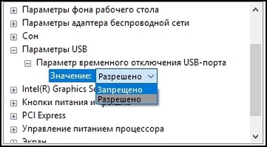 Если в вашей версии Windows отсутствует такая опция, ничего страшного, мы будем использовать PowerShell для изменения данного параметра. Если вы используете беспроводную (USB) мышь, тогда я рекомендую отключить опцию «Параметр временного отключения USB-порта»: