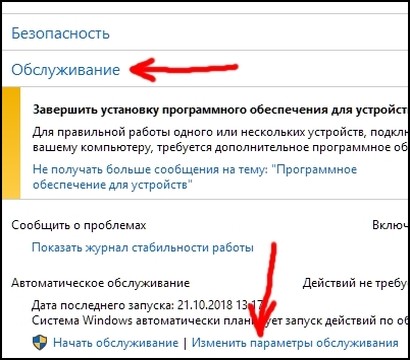 4) Перейдите в панель управления ? Центр безопасности и обслуживания ? «Обслуживание» ? «Изменить параметры обслуживания»: