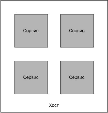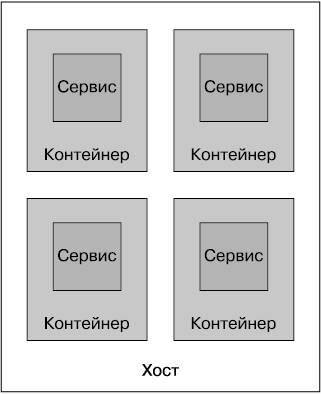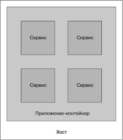 Эта модель знакома и тем, кто вел развертывание в каких-нибудь разновидностях приложений-контейнеров. В некотором роде использование приложений-контейнеров является особым случаем модели нескольких сервисов на каждом хосте, поэтому мы рассмотрим этот вопрос отдельно. Эта модель может упростить жизнь разработчика. Развертывание нескольких сервисов на одном хосте, работающем в производственном режиме, равносильно развертыванию нескольких сервисов на локальной рабочей станции или ноутбуке. Если нужно посмотреть на альтернативные модели, следует найти способ сохранения концептуальной простоты для разработчиков.