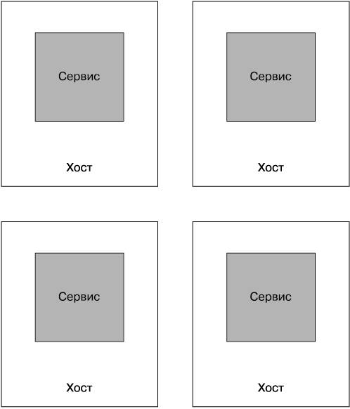 Рис. 6.8. Размещение по одному сервису на каждом хосте