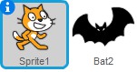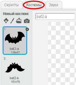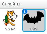Летучей мыши тоже надо добавить один костюм. Выберите спрайт Летучей мыши.