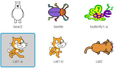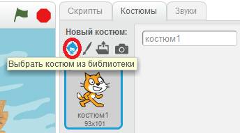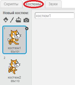 Теперь надо добавить нашим персонажам по несколько костюмов. Выберите спрайт Кота.