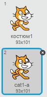 Теперь добавьте Коту ещё один костюм, такой же, как и костюм1.