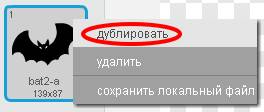 Скопируйте первый костюм Летучей мыши, нажав на него правой кнопкой и выбрав «дублировать».