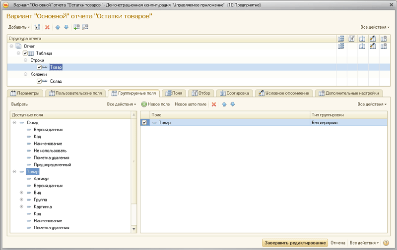Настройка варианта отчета