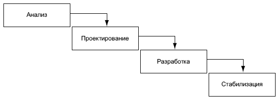 Если стадии, органично совпадающие с концептуальным, логическим и физическим дизайном системы, расположить иерархически без обратных связей, то получим классическую схему «водопад», исторически считающуюся первой методологией в софтостроении.