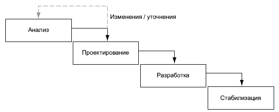 Из сказанного вовсе не следует, что методология плоха. Просто она имеет свои границы применения, широта которых напрямую зависит не только от опыта аналитиков и проектировщиков, но и от новизны моделируемой предметной области. В достаточно консервативных банковских или промышленных приложениях «водопад» может подойти и для комплексной системы. Если же, например, возникает принципиально новый рынок, то найти опытных подрядчиков проблематично, а бизнес-направление заказчика находится в постоянной реорганизации, поэтому стадия анализа, занимающая больше 3–4 недель, рискует быть малопродуктивной. И не только стадия анализа, но и весь проект в целом. Тут впору подумать над временной автоматизацией в рамках офисного пакета и скриптовых сред вместо комплексного решения.