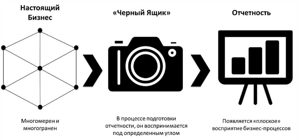 • Финансовое подразделение оперирует размерностями данных, которые в первую очередь будут покрывать потребности подразделения, входящие в зону его ответственности перед внешними инвесторами (МСФО отчетность, Investor Relations и другие). В этом смысле многомерная и сложная бизнес-сущность организации представляется в виде плоского отчета, во много отвечающего ограниченному количеству аналитических задач.