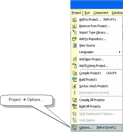 1) Выберите пункт меню Project –> Options… (рис. 174).