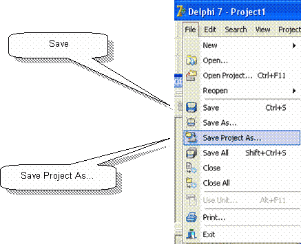 В открывшемся диалоге найдите нужную рабочую папку и укажите имя сохраняемого файла. Файлу проекта автоматически назначается расширение DPR (а не PAS, как в Borland Pascal).