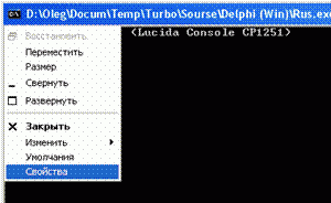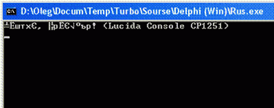 Следующие вызовы процедур переключают консоль на кодовую страницу CP1251 (Win-1251). Если все же русские буквы показываются неверно, откройте системное меню консоли (в левом верхнем углу окна) и выберите: Свойства -> закладка "Шрифт" -> Lucida Console.