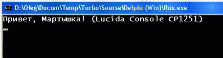 Writeln('Привет, Мартышка! (Lucida Console CP1251)');