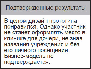 Шаблон завершается строкой «Подтвержденные результаты». Здесь вы можете записать свои высокоуровневые выводы по каждому участнику и отметить, кто из участников подтвердил или опроверг гипотезу вашего решения (рис. 8.8).