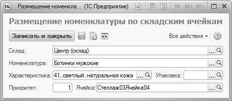 Рис. 5.33. Привязка номенклатурной позиции к складской ячейке