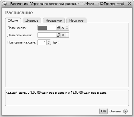 Рис. 4.7. Настройка расписания, вкладка Общие