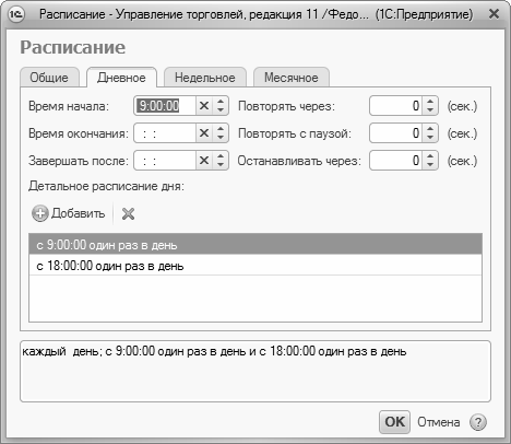 Завершается настройка расписания нажатием в данном окне кнопки ОК.